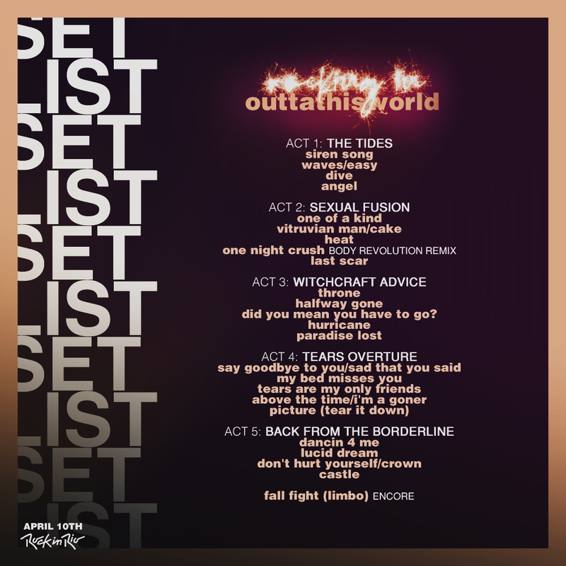 Gravado durante o show da cantora no Rock In Rio do ano 4. "Rocking In" é o primeiro álbum ao vivo de outtathisworld, lançado em homenagem ao aclamado show. Com 24 performances de sucessos, faixas especiais e inéditas, o show conta com o conceito de desejos e arrependimentos, onde a artista navega por vários ambientes, até chegar onde está no momento atual. As faixas "siren song", "did you mean you have to go" e "dancin 4 me" estarão presentes no terceiro álbum de estúdio da artista, previsto para sair nos próximos meses. bloodydriver e Ali Aguilera contam com vocais em duas faixas do disco.